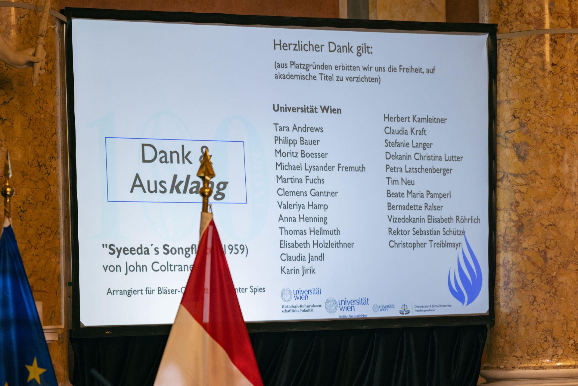 In diesem Zusammenhang bedanken wir uns für die Kooperation und die freundliche Unterstützung durch: Institut für Geschichte der Universität Wien; Historisch-Kulturwissenschaftliche Fakultät der Universität Wien und deren Forschungsschwerpunkt „Demokratie und Menschenrechte“; Forschungsverbund „Demokratie und Menschenrechte“ der Universität Wien; Zukunftsfonds der Republik Österreich; Nationalfonds der Republik Österreich für Opfer des Nationalsozialismus