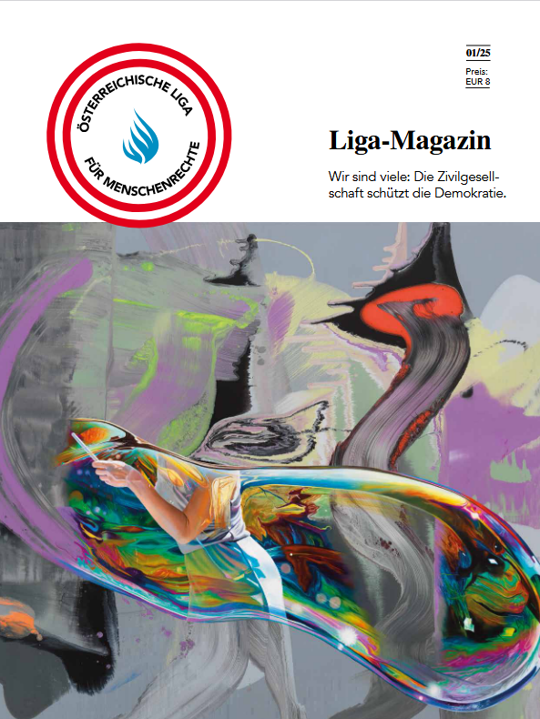 Kunst & Kultur im Zusammenhang mit Menschenrechten werden ebenso behandelt wie Buchbesprechungen und Berichte aus der täglichen Arbeit der Liga; der Blick in die internationale Arbeit fehlt dabei auch nicht.